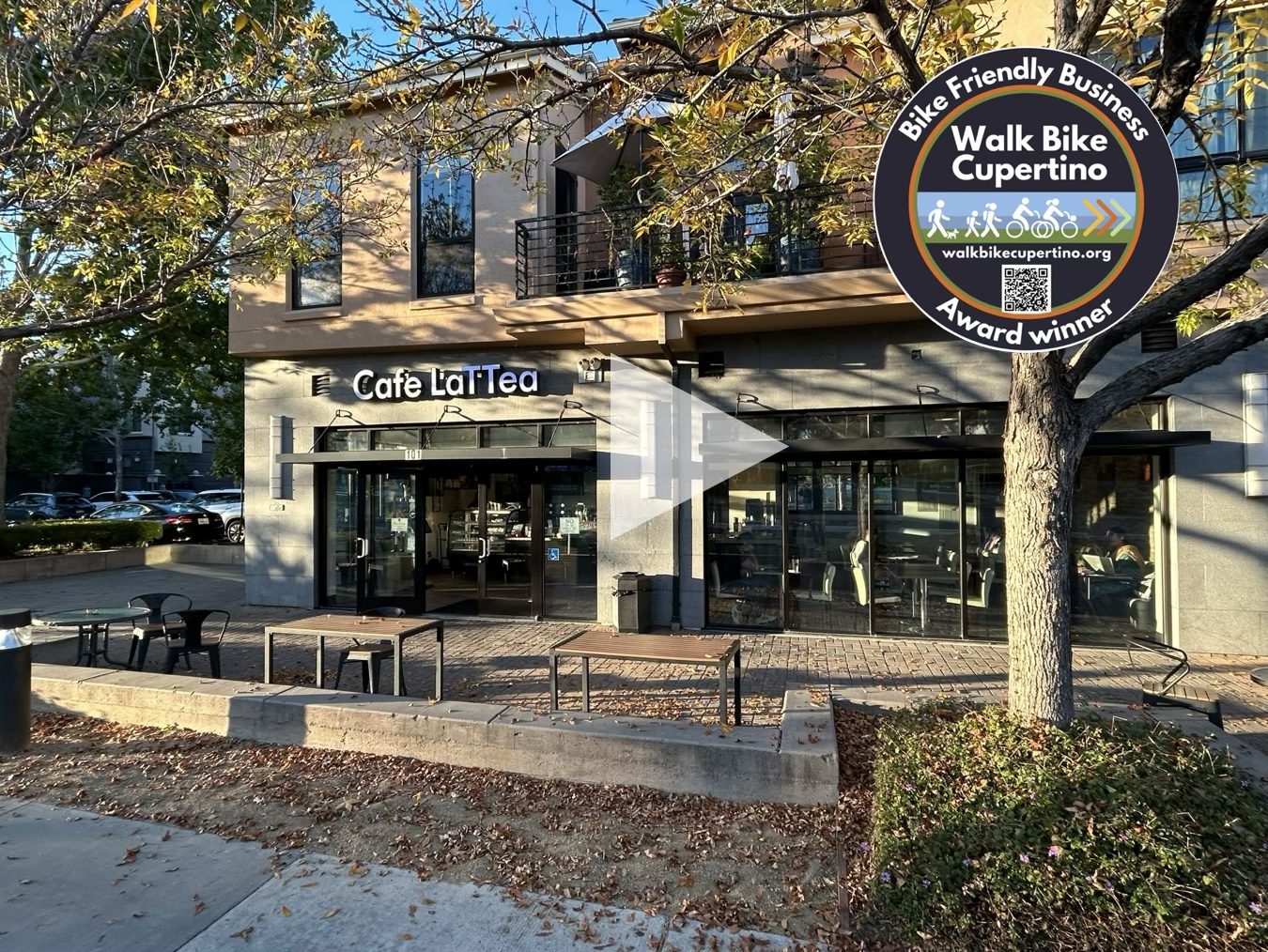 This month, let’s go to Cafe LaTTea! The cafe is located on Stevens Creek Boulevard (19501 Stevens Creek Blvd, between Wolfe Rd and Main Street Cupertino) and enjoys the presence of protected bike lanes for cyclists to safely reach their destination.