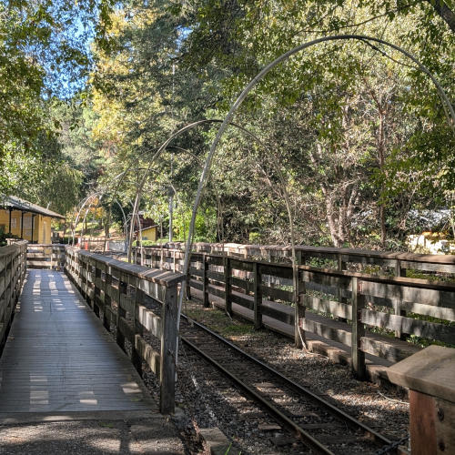 What a sheer joy on children’s faces taking the train! The miniature steam engine winding through the trees and over the creeks is pure magic for toddlers and young children.