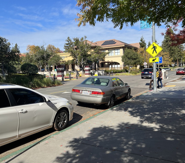 Parking at the “bump out” where the brick crossing meets the sidewalk is common.