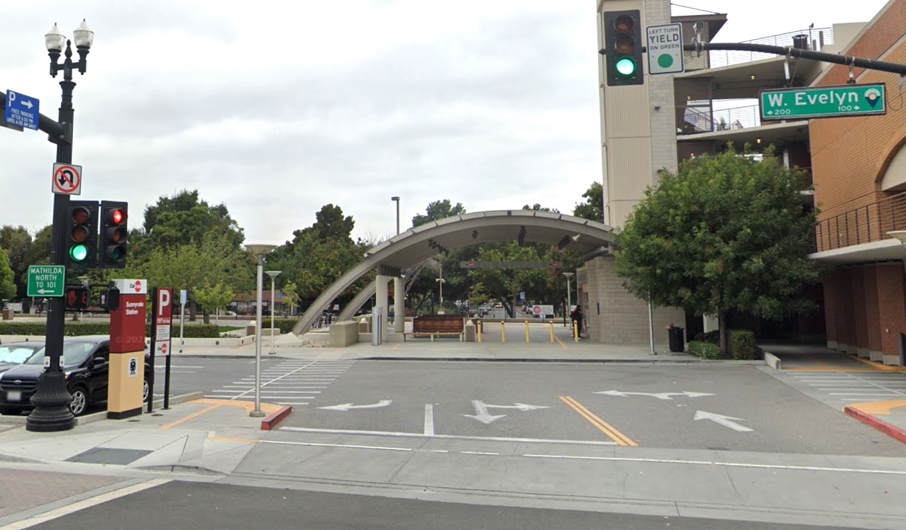 Anticipating Caltrain ridership growth, the City of Sunnyvale is improving bike-pedestrian access around the Sunnyvale Caltrain Station. A survey of the public indicated that 38% of respondents would walk or bike to the Station more instead of drive if safety improvements were made. At the Bicycle Pedestrian Advisory Commission (BPAC) meeting this month, staff unveiled concept plans of these improvements. There were many street and intersection improvements proposed. Some of these proposals truly improve safety while some don’t, and some areas should but did not get addressed.
