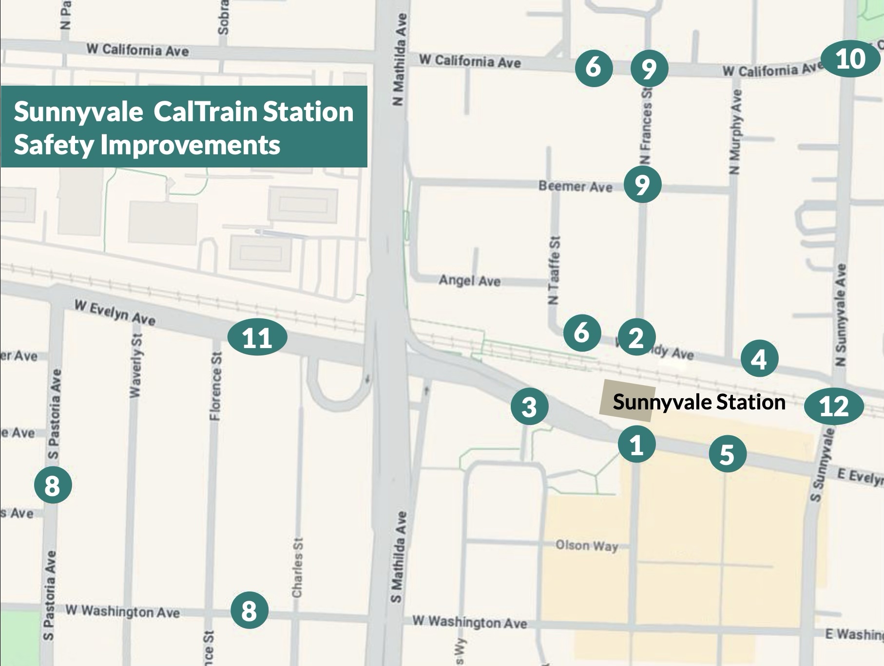 12. Sunnyvale Ave Bike-Ped Undercrossing of the Caltrain tracks.